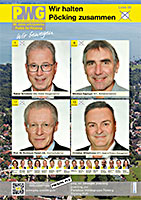 Seit ihrer Gründung vor 66 Jahren ist die Parteilose Wählergruppe (PWG) die prägende und bewegende kommunalpolitische Kraft in Pöcking. Uns war es wichtig, grundsätzlich unabhängig zu sein von den Vorgaben einer politischen Partei. In der Kommunalpolitik sollten ausschließlich die Belange der Gemeinde und ihrer Bürger im Mittelpunkt stehen – und auch heute noch ist dies unverändert Maßstab und treibende Kraft unseres Handelns. Wir sind ausschließlich dem Wohle Pöckings und seiner Bürger verpflichtet und wollen uns diese Unabhängigkeit als freie Wählergruppe auch erhalten.